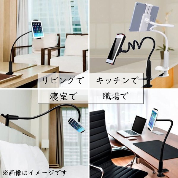 机や椅子の手すり、ベッドの取っ手などに装着でき、スマホやタブレットを欲しい位置で固定できます。